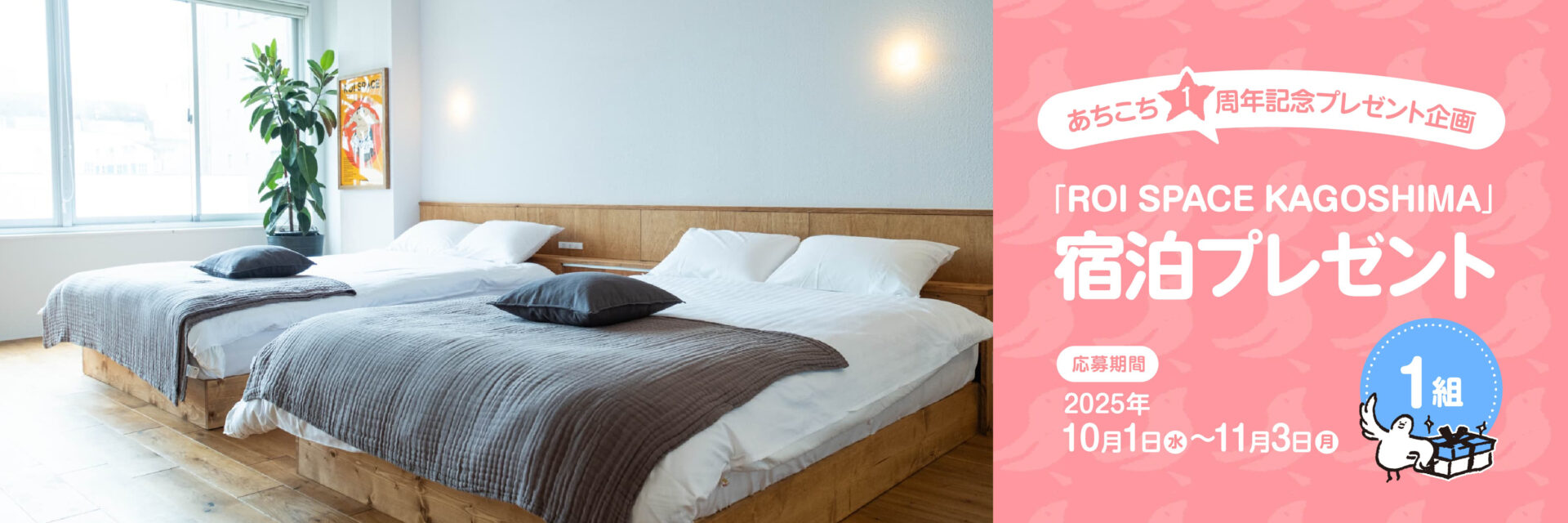 【あちこち1周年記念】「ROI SPACE KAGOSHIMA」1室に最大4名が泊まれる宿泊プレゼント!
