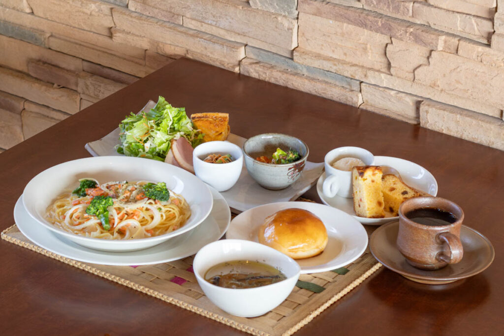 のどかな風景が広がるカフェレストラン「Cafe NODOKA」で、農園野菜と手作りパンのランチを