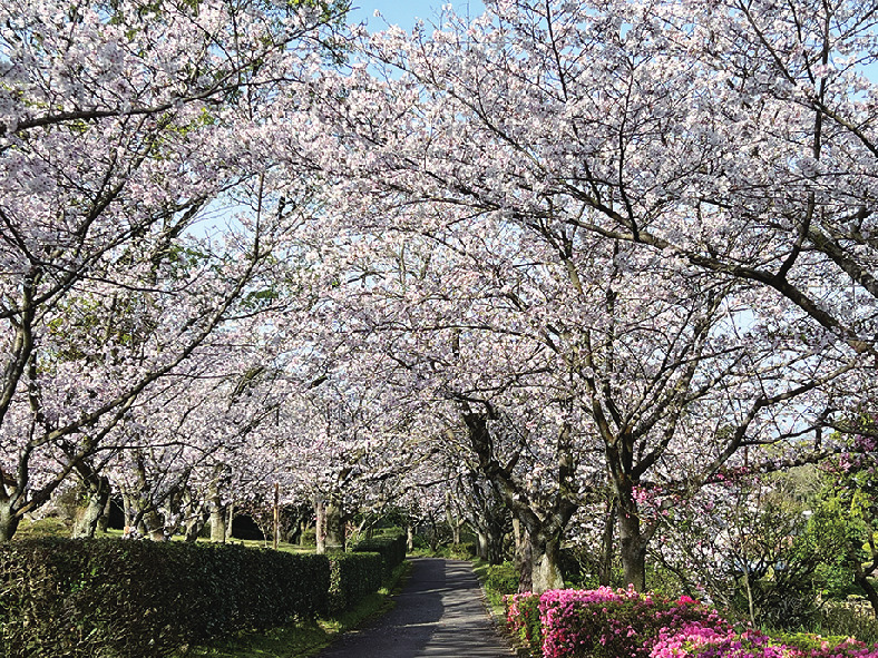 日置市日吉町の山あいにある閑静な「毘沙門自然の森公園」。伊集院の一宇治城(城山公園)の守り神として地域に伝わる「毘沙門天」に由来する公園です。ソメイヨシノやシダレザクラなどが植えられ、春には知る人ぞ知る隠れた花見スポットとして親しまれています。芝生にシートを広げ、ゆっくり花見を楽しんでみては。近くの毘沙門天の史跡も合わせて巡って。