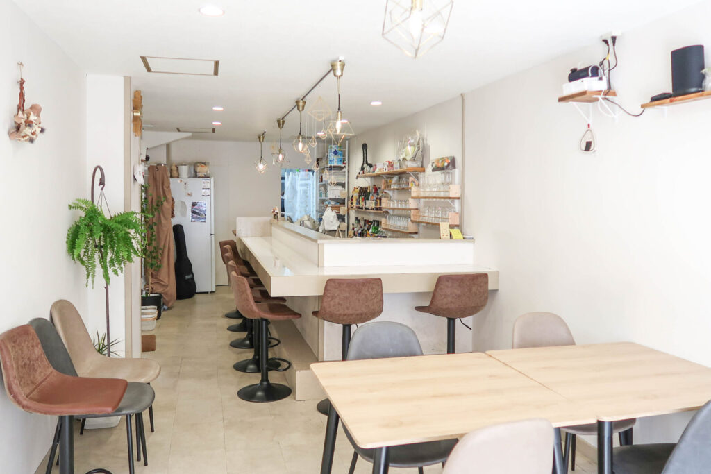 店内は木のぬくもりが感じられるアットホームな雰囲気。通りに面した大きな窓からは明るい陽が入り、リラックスして食事を楽しめますよ。
