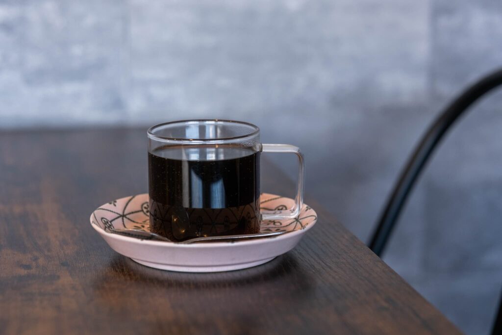 「本日のコーヒー」には、日替わりで世界各国のフレーバーコーヒーで提供しています。この日はスペイン産のバラのフレーバーコーヒー。ふわりと広がる上品で優しいバラの香りとほのかな甘さが心地よく、すっきり爽やかな後味でした。ほかにも、ベルギー産のチョコレートフレーバーなど、産地や風味ごとに異なる一杯に出会えるのも楽しみのひとつです。