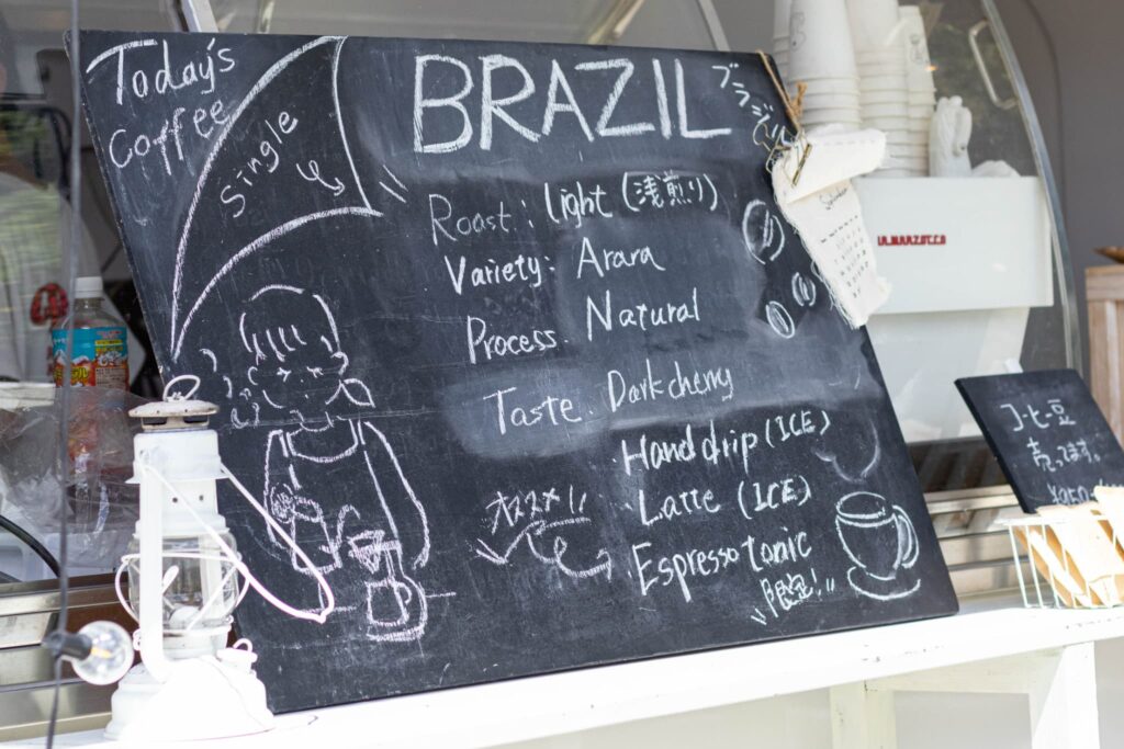 レジカウンター横には、その日に使っているコーヒー豆の産地や焙煎度合い、品種、生成方法まで詳しく書かれた黒板があります。