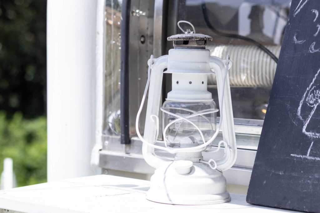 店舗として使われているのは、海外から取り寄せた、レトロなフォルムのトレーラーカー。真っ白な外装が緑の中でひときわ映えて、道行く人の目を引きます。