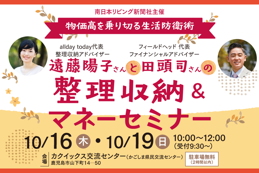 “お片付けとお金のことを一度で学べる”大人気セミナーを11月16日(水)・19日(土)に開催します。