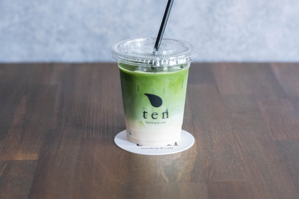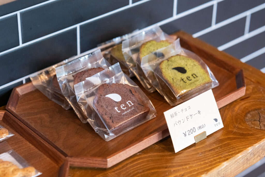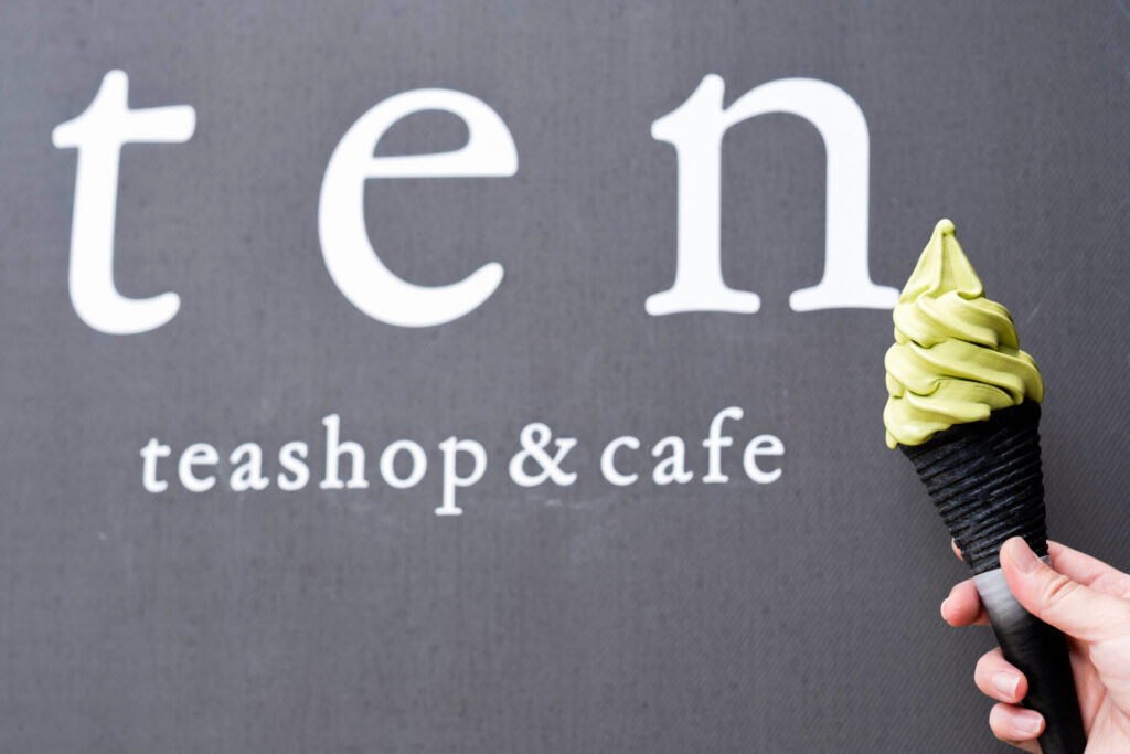 ここは二代目で茶師の今隈幸洋さんが、2023年にオープンしたお店。〝時間に読点を打つようにひと休みしてほしい〟という意味を込めて、句切りの符号である読点をロゴと店名に。「文章と文章の間にある読点で“一呼吸”おくように、ここでひと休みできる時間を過ごしてほしいです」と話します。そんな「ten」の魅力は、この土地ならではの緑茶を使ったメニューです。