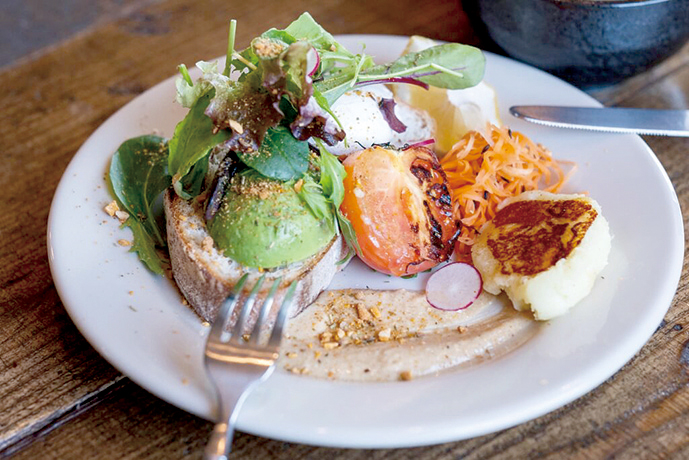 指宿駅近く、朝7時から開くカフェ。メルボルンのカフェ文化を取り入れたモーニングやランチが人気で、アボカドをぜいたくに使った「スマッシュアボカド」、きのこたっぷりの「ブルスケッタ」などが楽しめます。木のぬくもりに包まれた空間は、地元の人たちの憩いの場になっています。散策の拠点として、心も体も満たされる時間をぜひ。