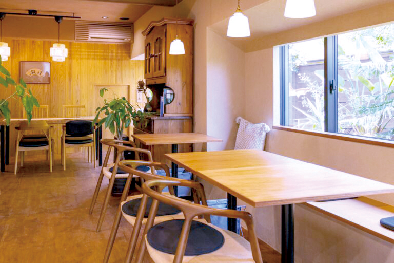 木の温かみあふれる店内で、庭を眺めながらゆったりと。和と洋が交わる穏やかなお茶時間を味わってみて。