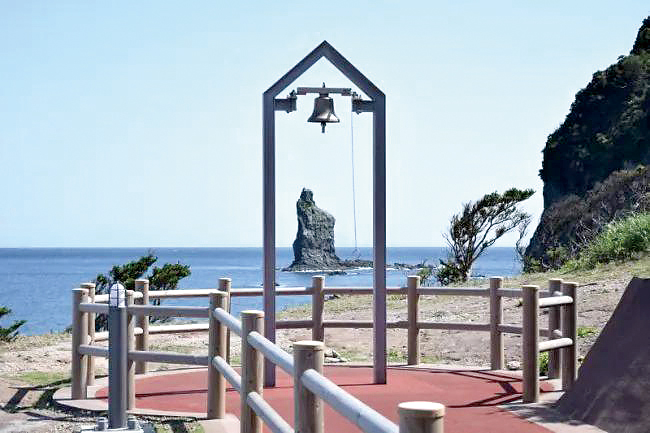沖にそびえる標高42mの神秘的な「立神岩」を望めます。行楽シーズンはキャンプやピクニックもお勧め。