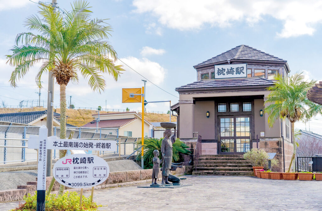 枕崎駅は本土最南端の始発・終着駅。日本最北端・北海道稚内駅からレールが続いています。