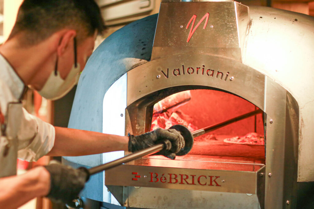厨房の奥には、自慢のピザを焼く薪窯があります。石窯メーカーとして世界的に知られるイタリア・フィレンツェ近郊にあるValoriani社と日本の企業が共同開発したものなんだとか。