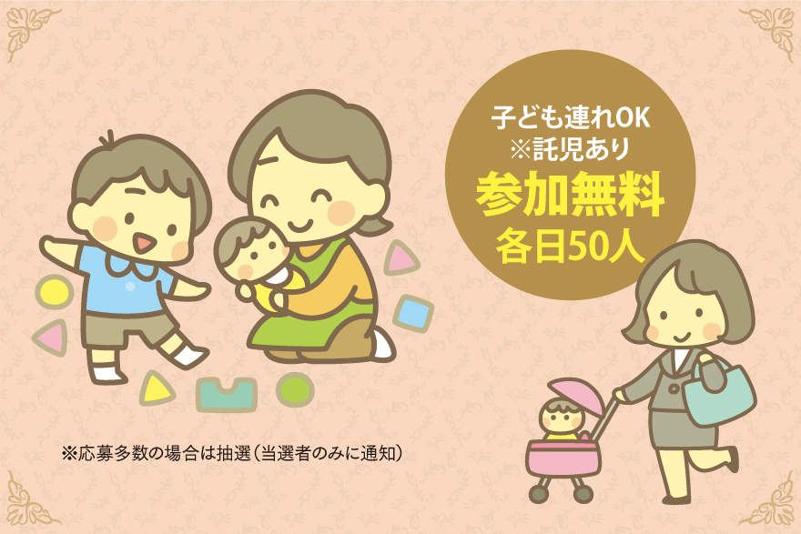 両日とも託児があるので、子ども連れでの参加もOK! 子育て世代の方でも参加しやすくなっています。