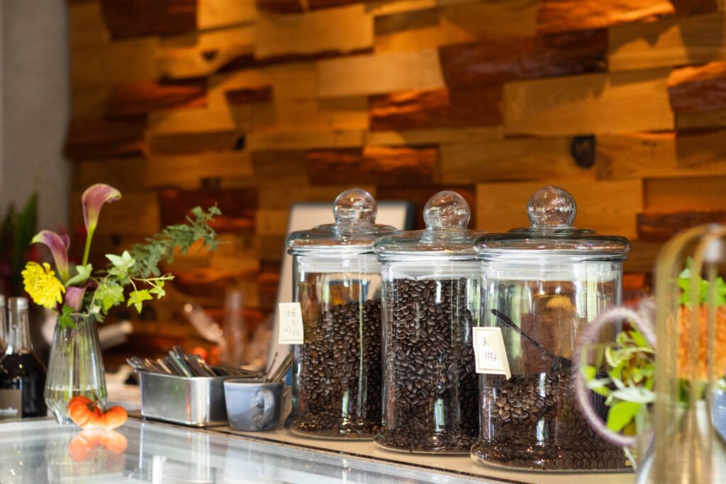 店内でも提供している自家焙煎のコーヒーには、スペシャリティコーヒーを使用。豆はオリジナルブレンドをはじめ、マンデリン、エチオピア、タンザニアがそろいます。抽出方法もドリップ、エスプレッソ、ダッチ(水出し)から選べるので、その日の気分や好みに合わせてオーダーしてみてください。