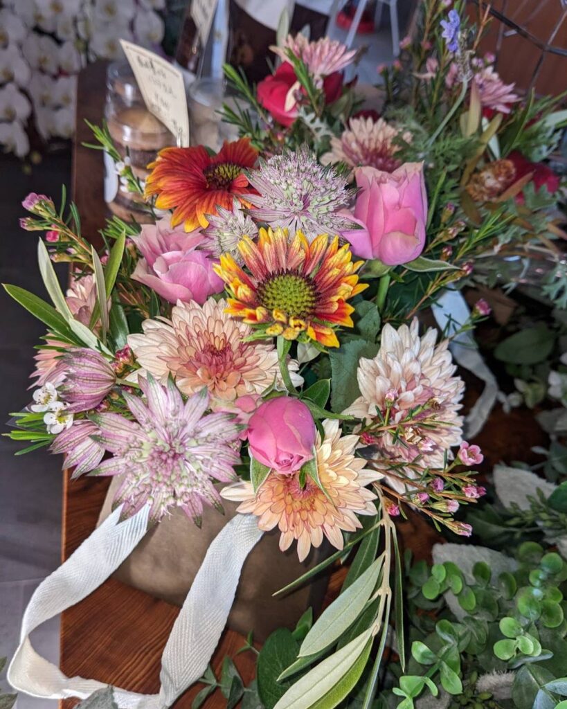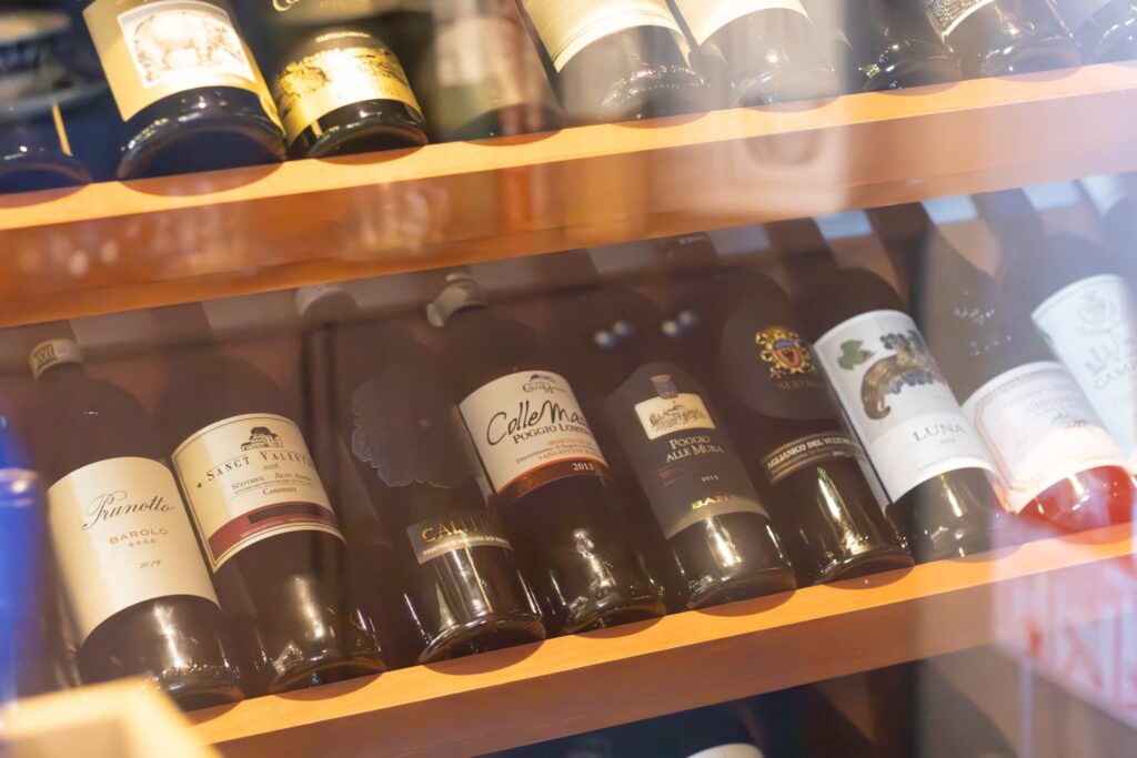 ワインセラーには、さまざまな料理や好みに合わせて楽しめる、飲み頃のワインがずらり。フラワーケースも設置されており、生花の販売はもちろん、特別な日を彩るアレンジメントや花束のオーダーも受け付けていますよ。