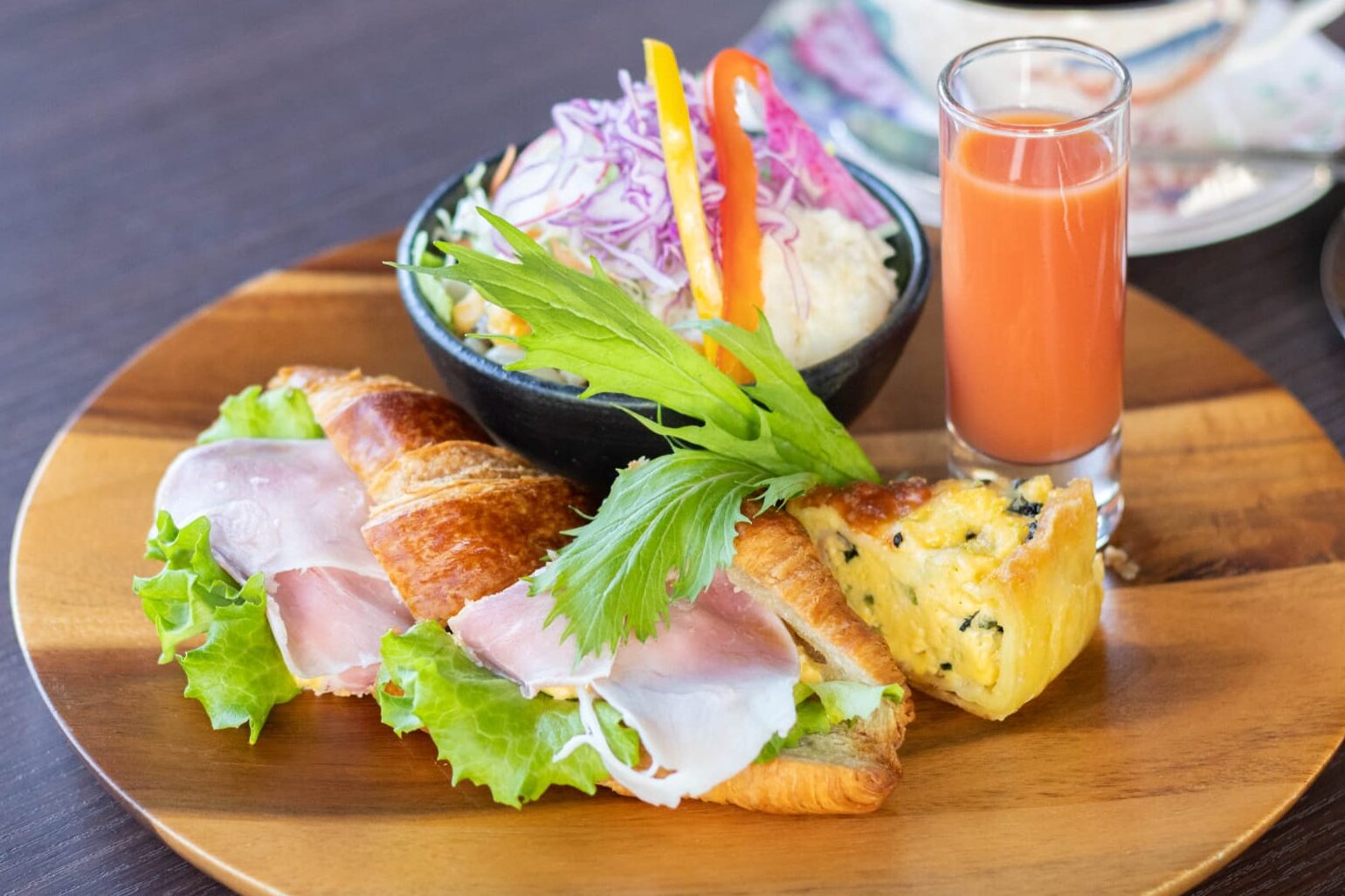 ふんわりとした食感と、香ばしさが特徴のクロワッサンは、店内で焼き上げています。そこに、豚モモ肉を使ったイタリアのボイルハム「プロシュート・コット」をサンド。塩味の効いたハムとまろやかな卵の組み合わせは、朝にぴったりの軽やかな味わいです。