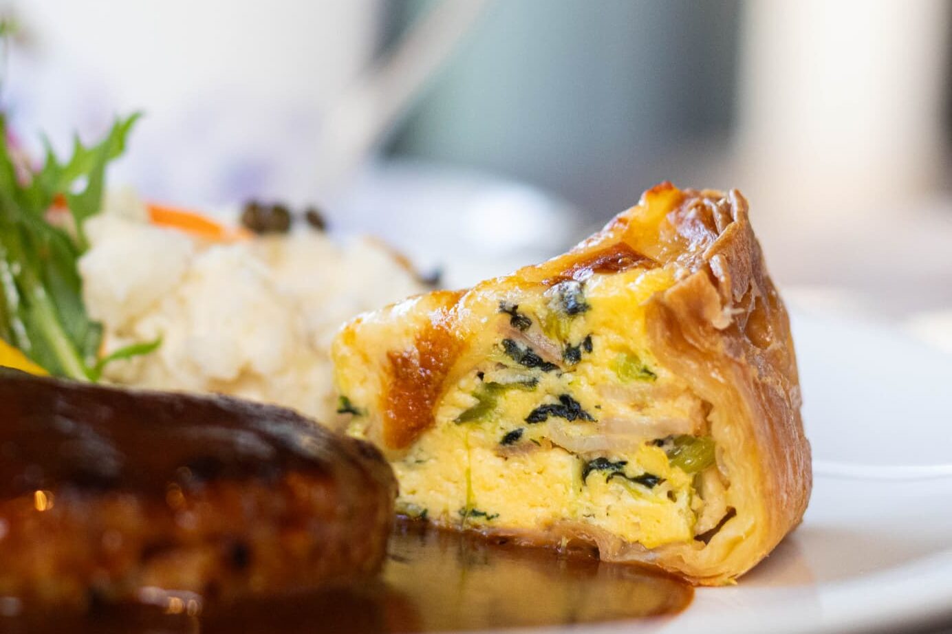 添えられたキッシュは、パイ生地から自家製。中にはベーコンとほうれん草が入っていて、噛むほどにバターの香りや卵のコクが広がります。