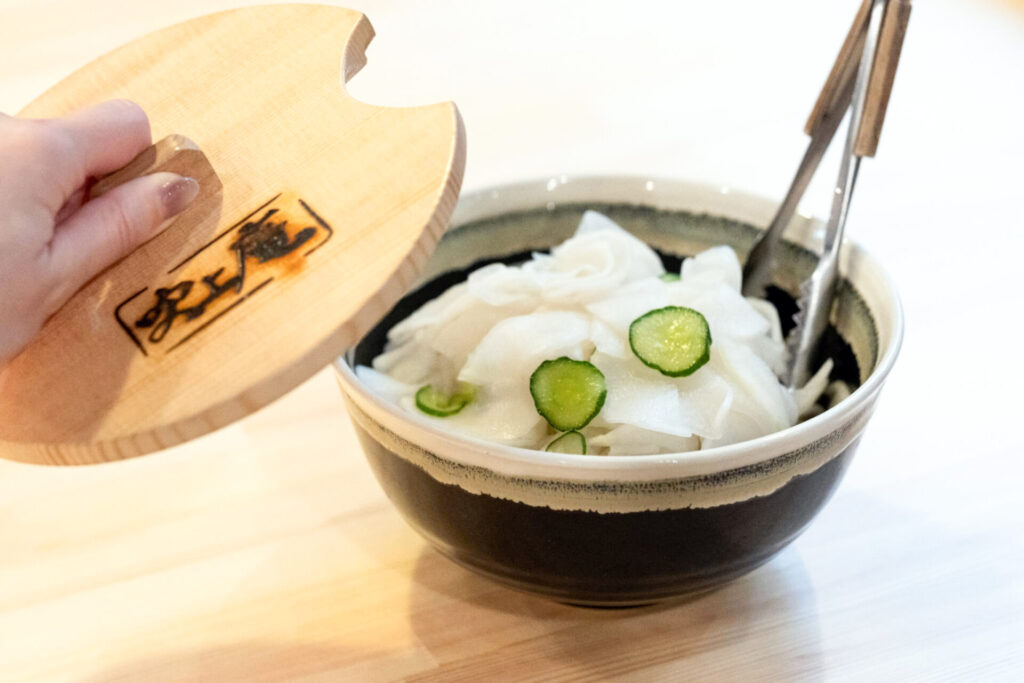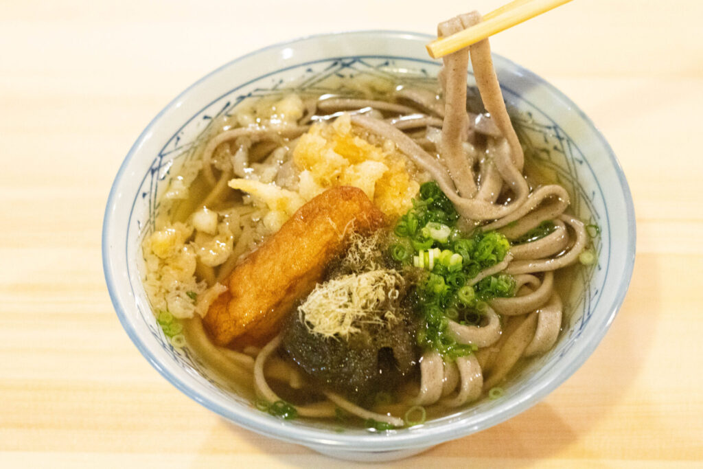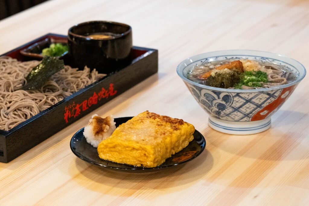 細麺は“冷たいそば”と“温かいそば”で、そば粉と山芋の配合や太さを微妙に変えています。冷たいそばは香りが立ち、すすったときののど越しが爽やか。温かいそばはやわらかい食感が特徴です。