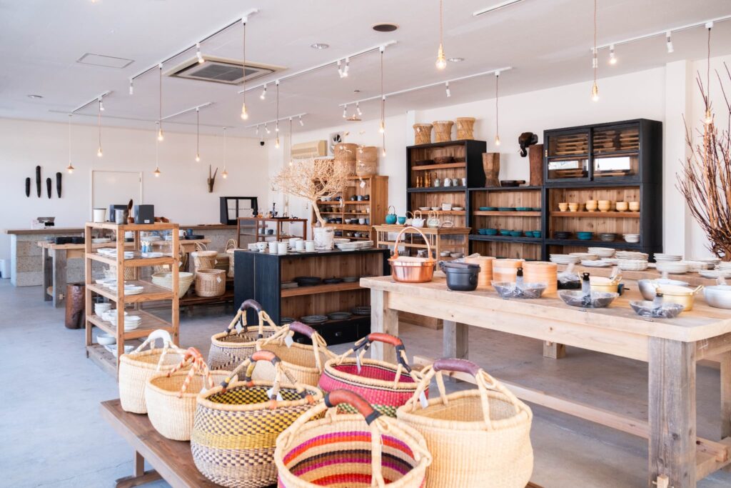 「福山フクノバ」から国道220号線まで下りると、目の前には桜島と海が広がる雄大な景色が待っています。あわただしい日常から少し離れて、ドライブの途中にふらりと立ち寄りたくなる場所。器と雑貨に触れながら、ゆっくりと流れる時間を楽しんでみてはいかがでしょうか。
