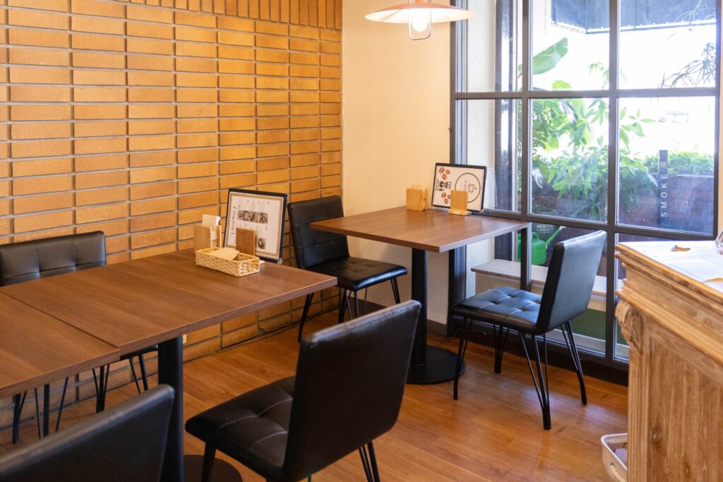 店内はカウンター席とテーブル席が3つのこぢんまりとした空間。