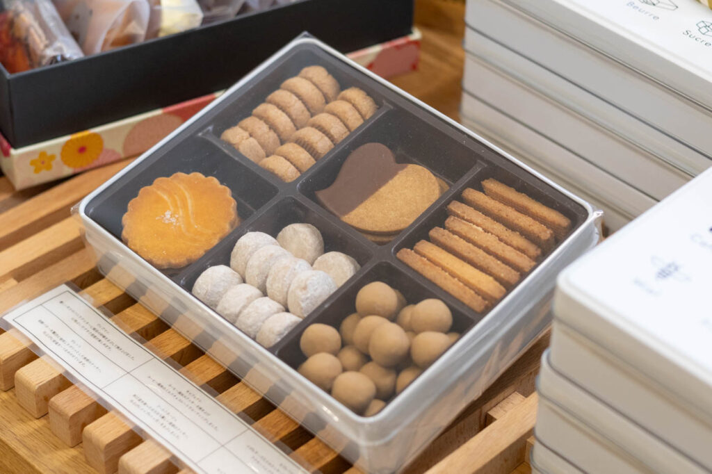 人気のクッキー缶をはじめ、焼き菓子やオリジナルチョコレートを使ったお菓子も豊富にそろう同店。ラッピングの種類や詰め合わせの組み合わせも多彩で、用途に合わせたギフトボックスも注文できます。