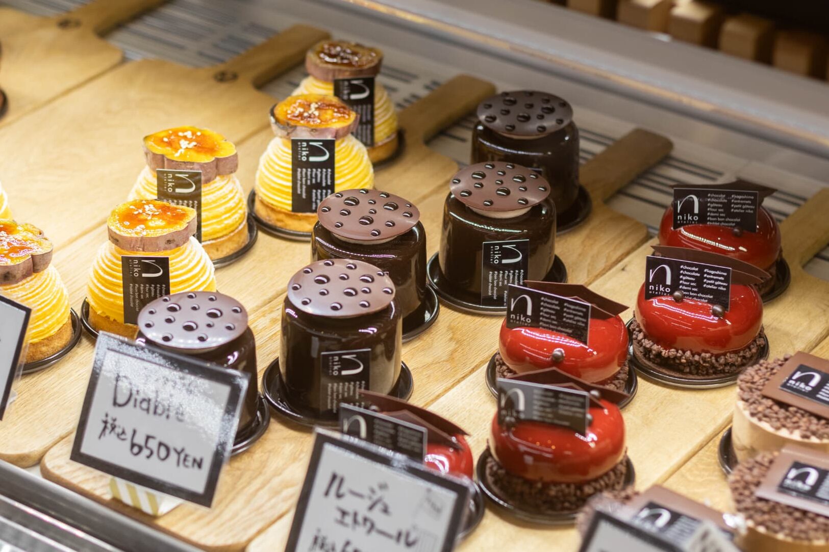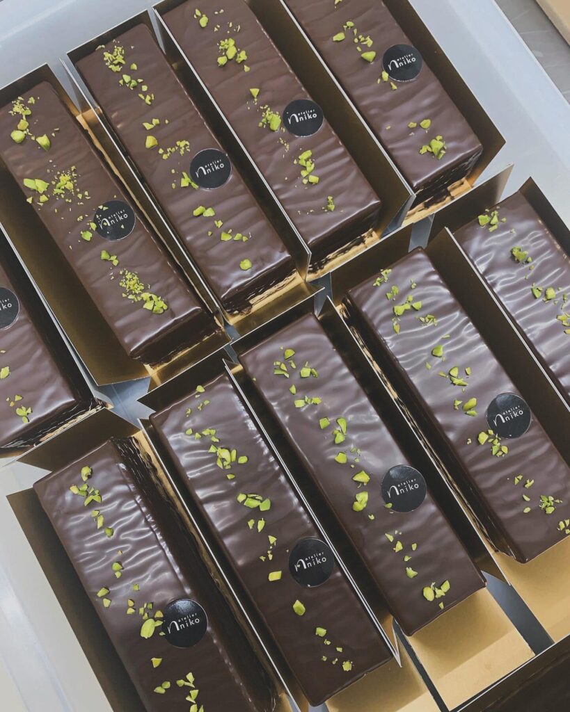 チョコレート系のスイーツの豊富さが「atelier niko」の魅力のひとつ。オーナーパティシエが厳選した、世界各地のチョコレートを使っています。