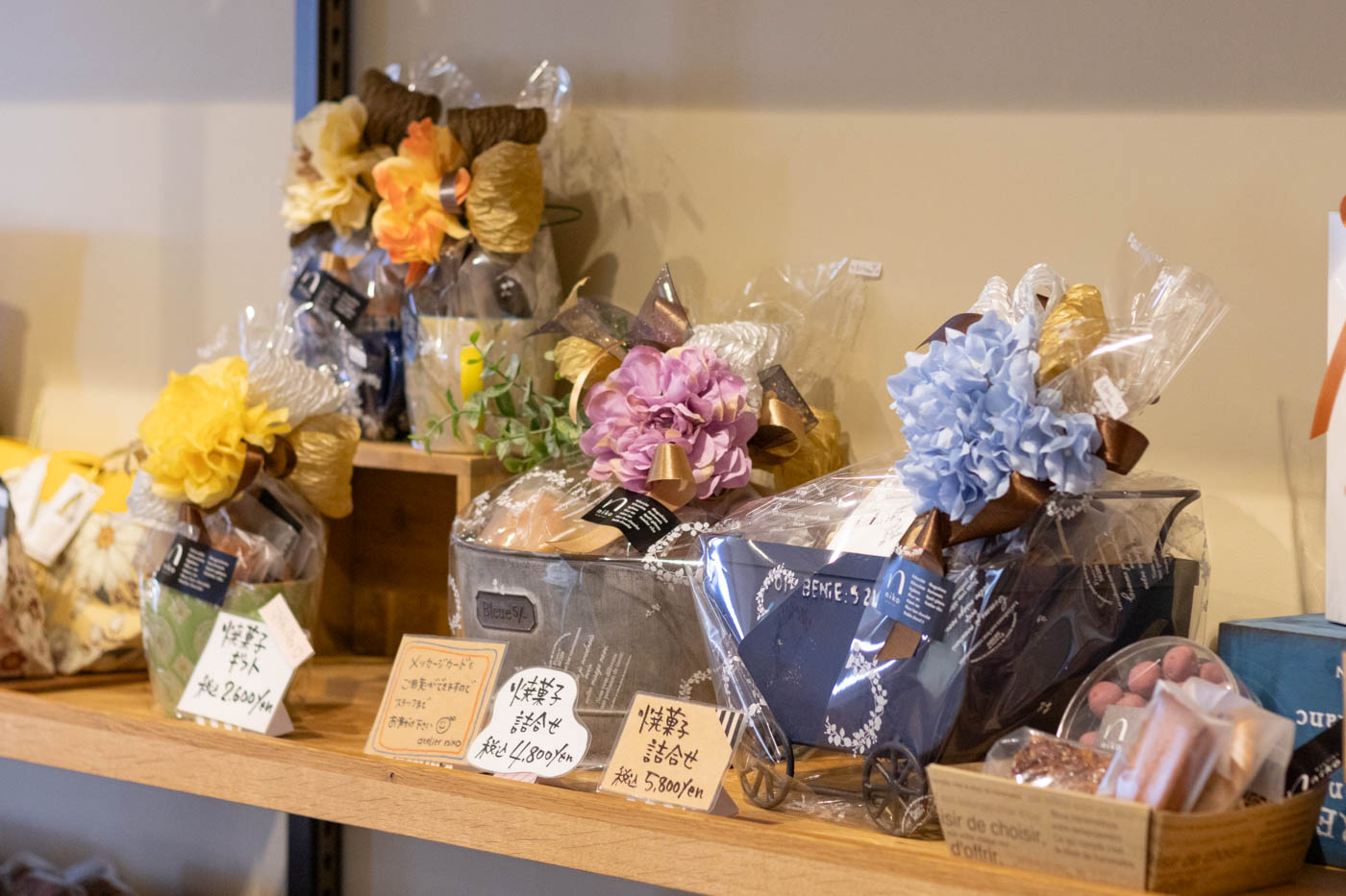 人数や用途に合わせて選べるラッピングと、豊富な焼き菓子