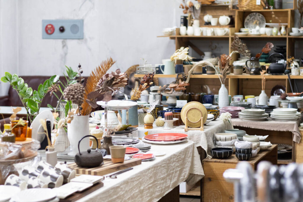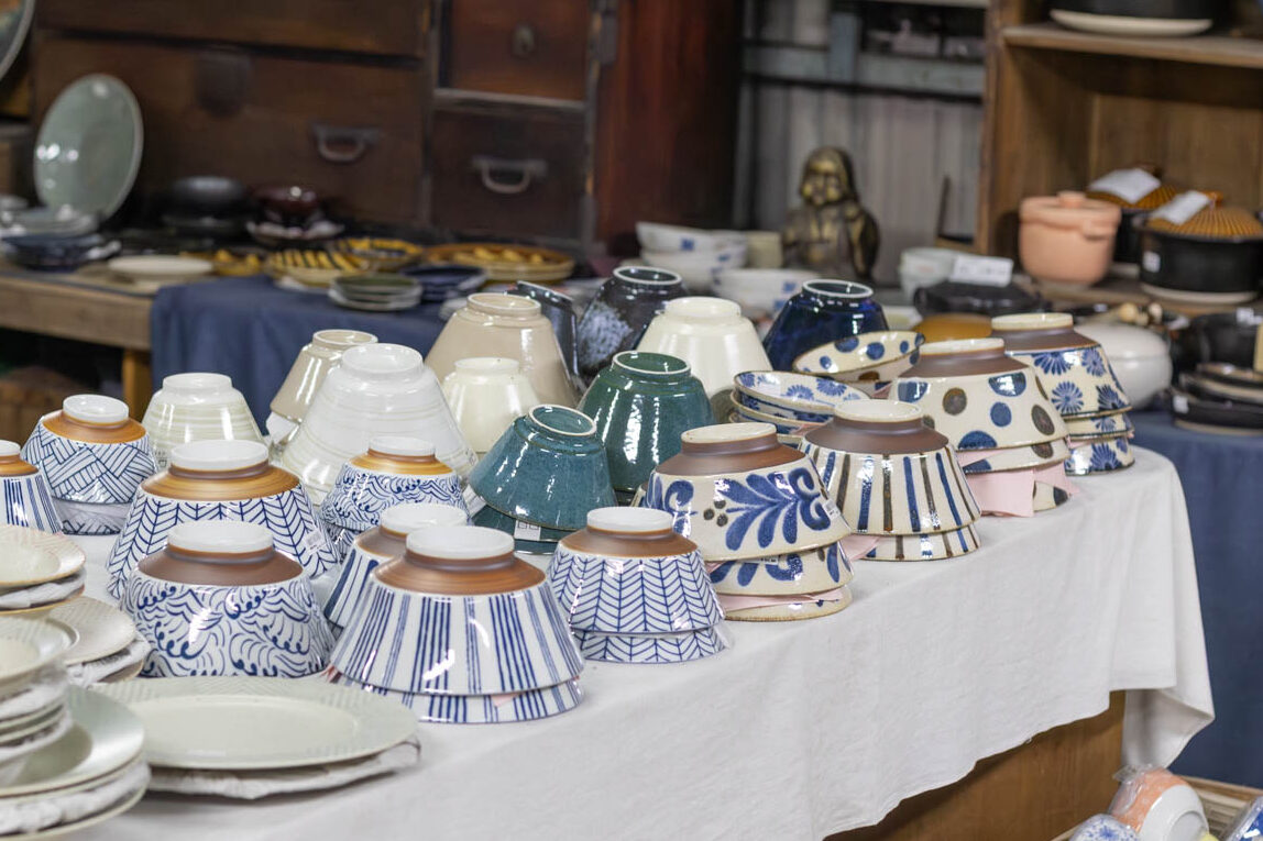 店舗奥の倉庫にも食器類があり、入れ替えも頻繁に行われるため、訪れるたびに新しい発見があります。