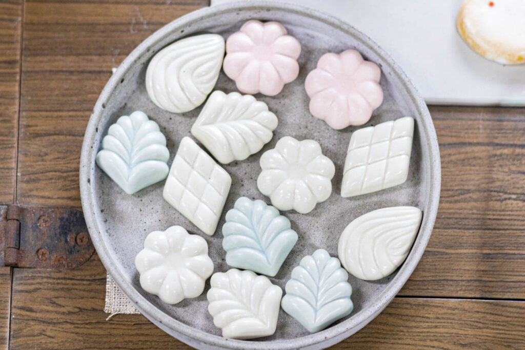 また、落雁(らくがん)のような淡い色と、ころんとしたフォルムがかわいい箸置きも「KANEAKI SAKAI POTTERY」の製品。器とセットにして、贈り物に選ぶ人も多くいます。