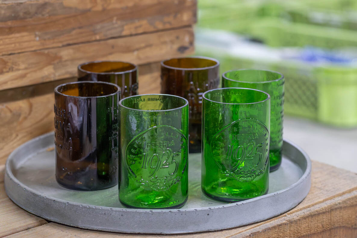 ガラス製品も豊富で、「アデリアレトロ」「津軽びいどろ」などの人気ブランドや、スペインのビール「アルハンブラ」の瓶を加工したユニークなグラスも。そのほか、昔ながらのロックグラスや切子、サンデー用のグラスなども販売しています。
