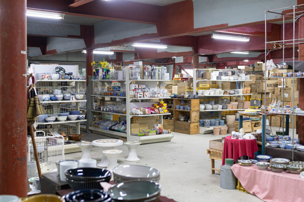 小売業にも力を入れてからは、店内奥の倉庫も販売スペースとして開放。張り紙の表示に沿って廊下を進んでいくと、圧倒されるほど多くの器が目に飛び込んできます。
