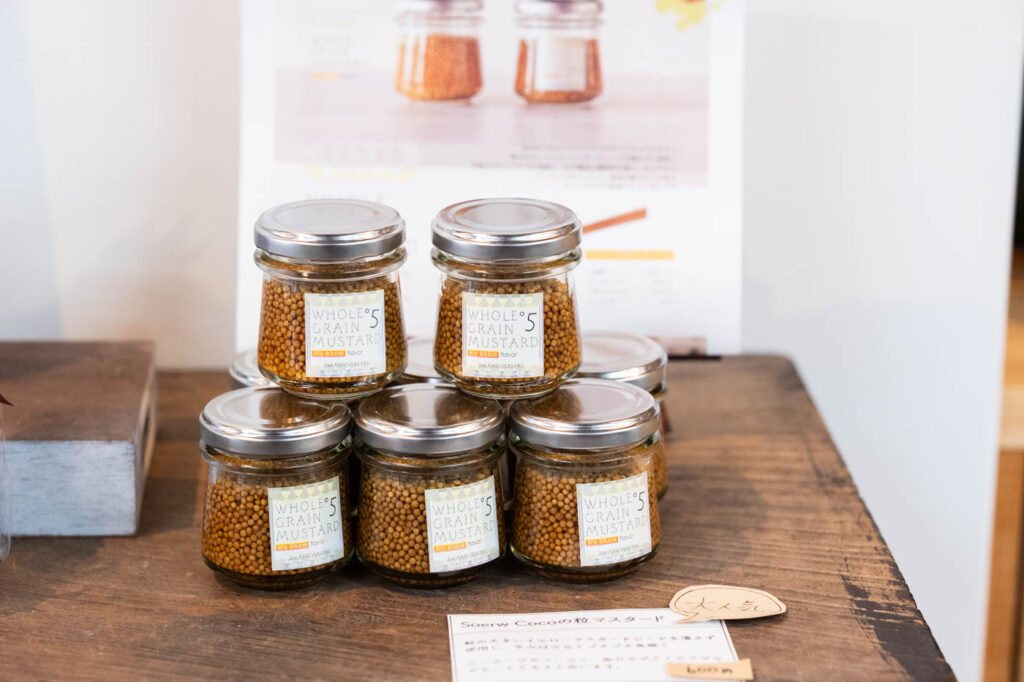 肝属郡東串良町にあるカフェを営む、副菜とスパイスのお店・Soerw Cocoの2周年を記念して作られた「粒マスタード」。