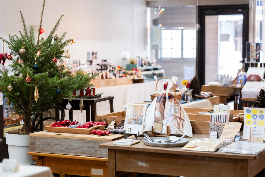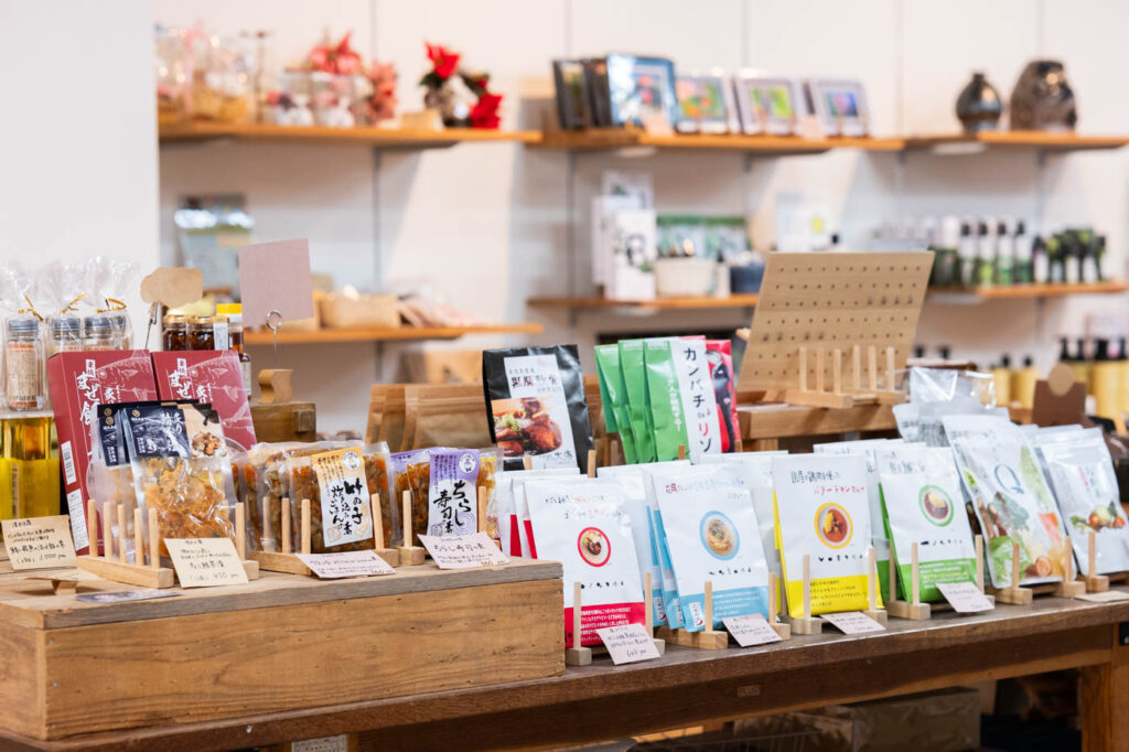 生活雑貨や調味料、お茶、小物など幅広いジャンルの商品がそろいます。季節によって内容は変わりつつも、常時およそ60種類を取り扱っています。