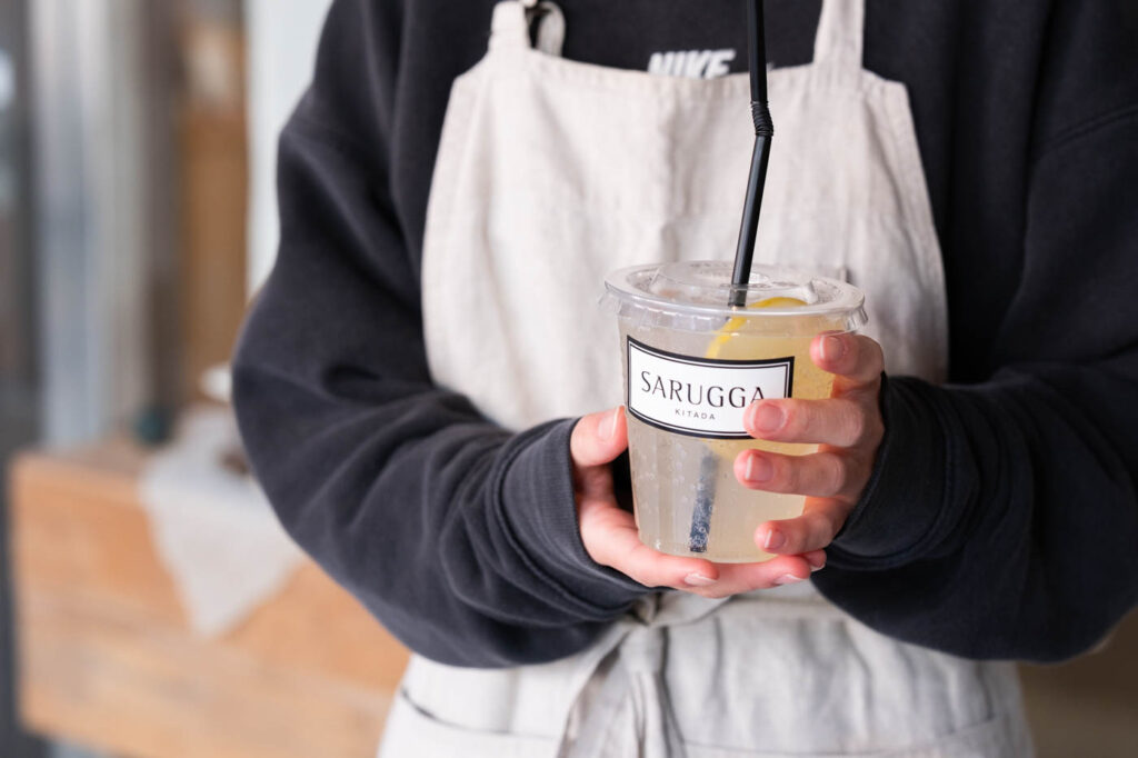 「KITADA SARUGGA」には、ちょっとひと息つきたいときにぴったりのドリンクメニューがあります。カフェスペースはもちろん、テイクアウトも可能です。