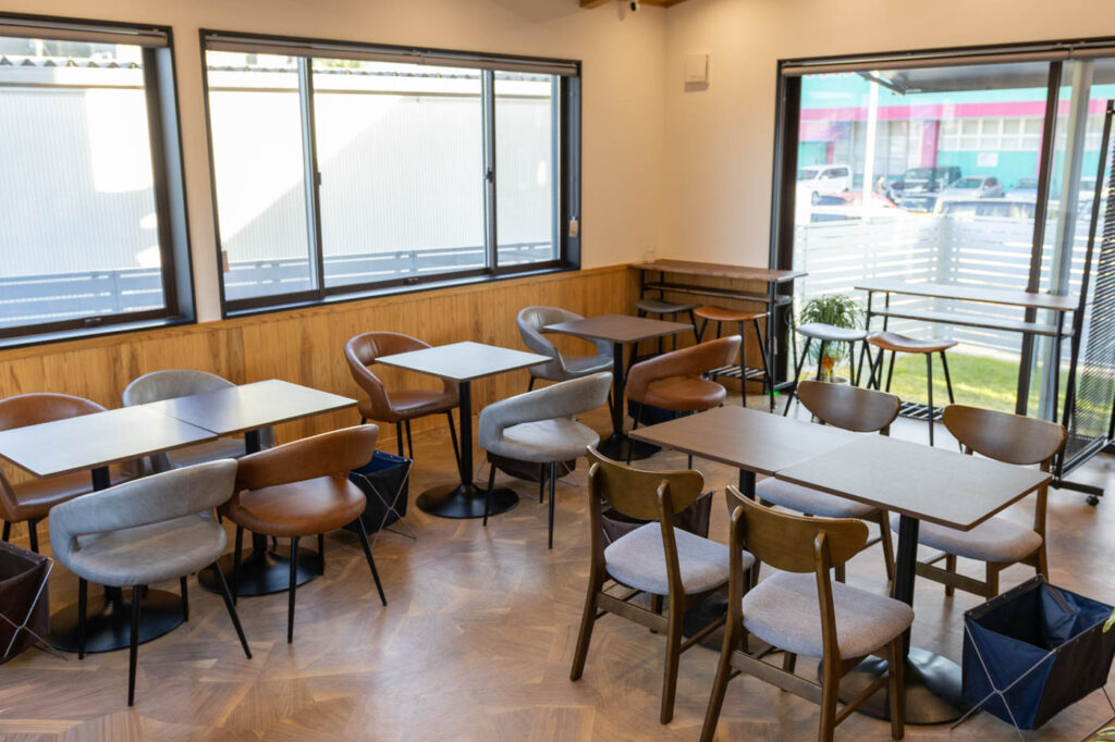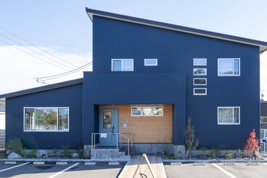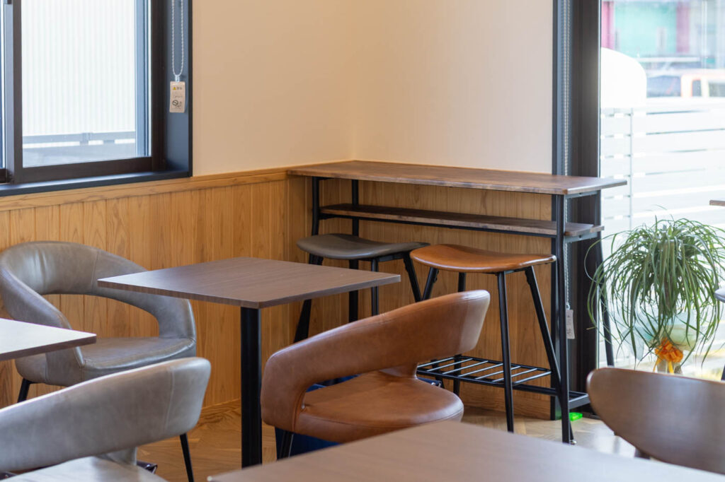 住宅街やドラッグストア、病院が並ぶエリアにあり、暮らしの延長でふらりと立ち寄れる気軽さが魅力。ネイビーの外観はスタイリッシュで、女性はもちろん、男性ひとりでも入りやすい雰囲気です。