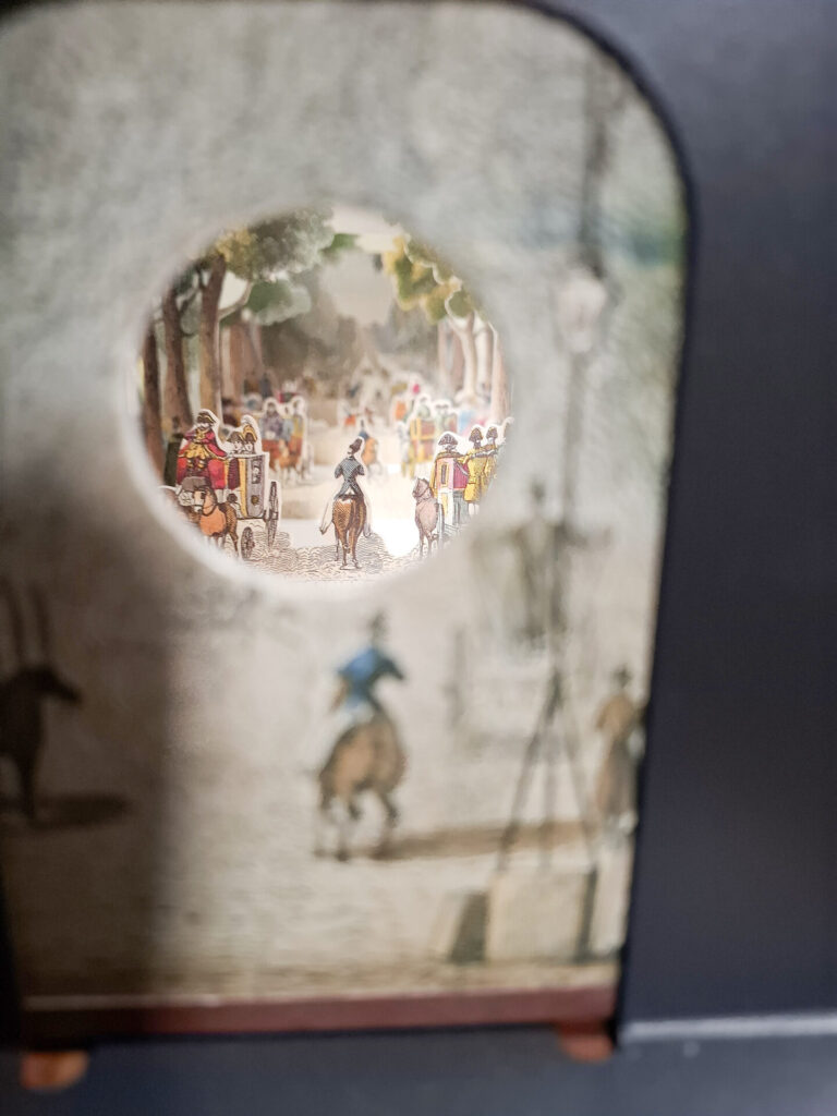 例えば、のぞきからくり絵本「ヴェルサイユの庭園」はこんな感じです。奥行きがあって、大人でもついのめり込んでしまいそう!
