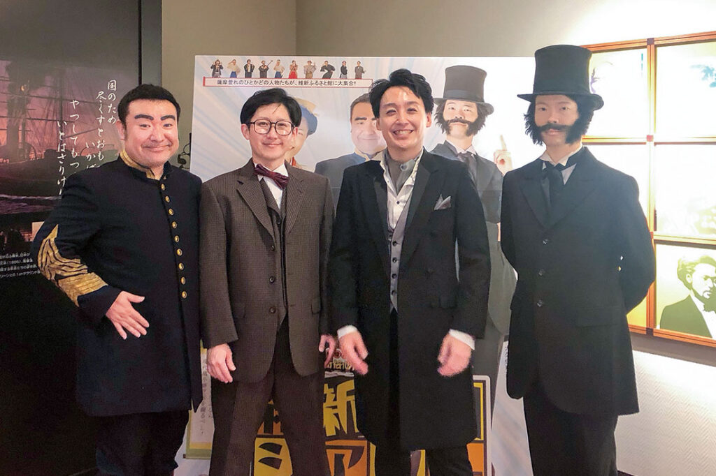 第1部では、維新伝心隊による演劇シアター「西郷さん町田さんのあかつきミュージアム」を上演。地元の役者扮(ふん)する鹿児島ゆかりの偉人がコミカルに演じます。「鹿児島中央駅前に建立されている〝若き薩摩の群像〟。その頂点に立つ男、町田久成。なぜ彼は、東京・上野にある国立博物館の初代館長になったのか。謎を一緒にひもときましょう」と主演の德田英太郎さん。