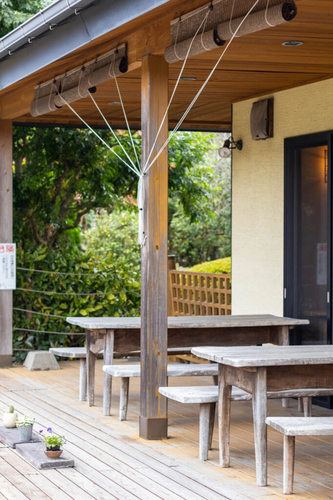 なかでもテラス席は、目の前に桜並木が広がり、満開の桜を眺めながら食事を楽しめる春が人気。オープン当初は小さかった桜の木も、20年以上の時を重ねて立派に育ち、今では季節の移ろいを感じさせてくれる風景として、多くの人を楽しませています。
