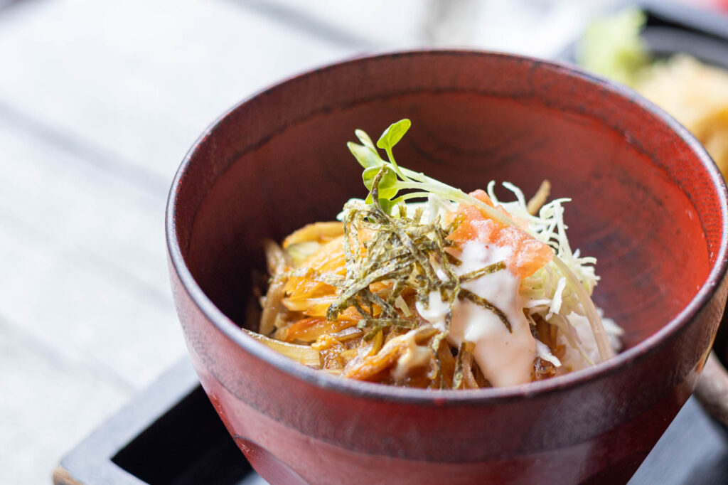 どの料理も、鹿児島の郷土に馴染みのある甘めの味に仕上げられていて、見た目は華やかでありながら、素朴でどこか懐かしさがあります。食べ進めるほどに、じんわりと心がほぐれていきますよ。