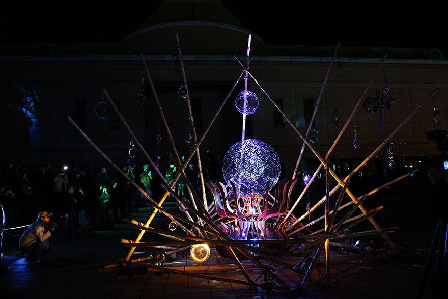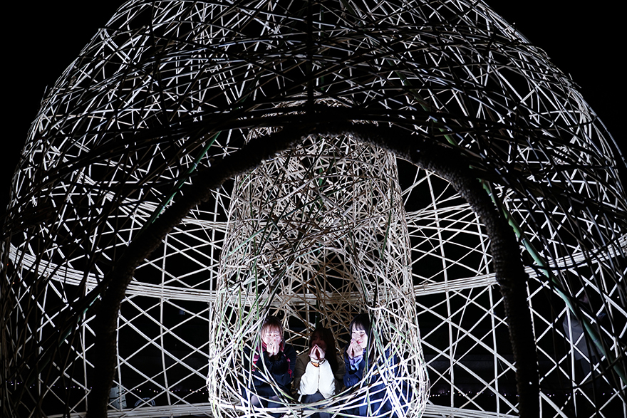 光と作品のプロデュースを手がけたのは、鹿児島を拠点に活動する「ギャラリー天地人」。アーティストとともに、新しいイルミネーションの形を生み出しました。
