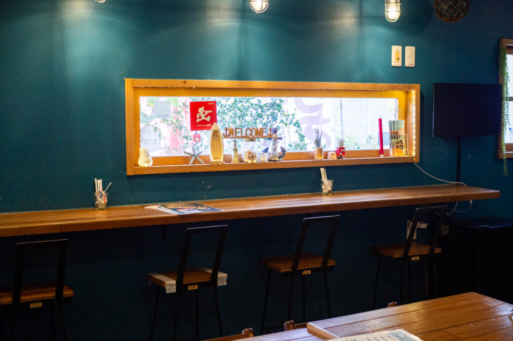 青を基調にした外観と店内は、初めてでも入りやすい雰囲気。オフィス街という立地もあり、毎日訪れるお客さんや男性客も多く、ひとりでも気軽に利用できます。