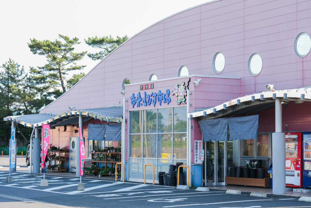 鹿児島市内から車で約40分。いちき串木野市の海沿いにある「市来えびす市場」は、地元の鮮魚や特産品が並ぶ人気スポットです。