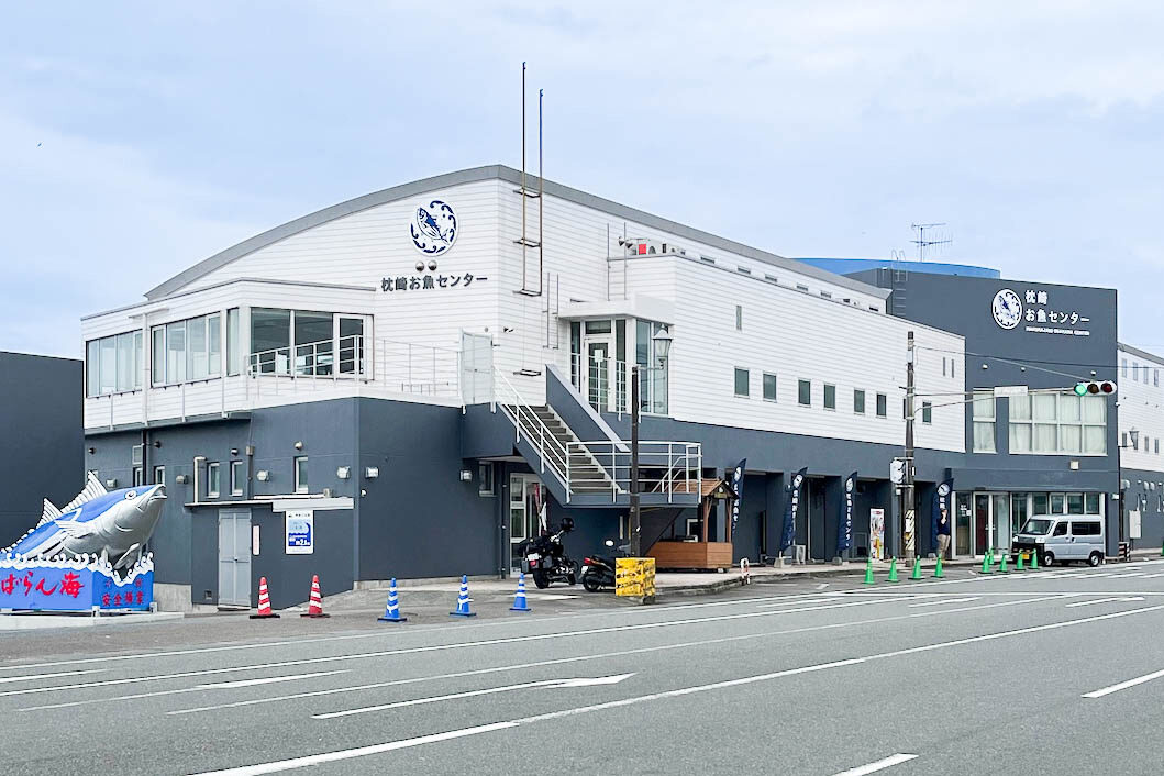 JR枕崎駅から車で約4分。枕崎漁港に水揚げされたばかりの鮮魚や海鮮加工品を販売する「枕崎お魚センター」は、2024年3月にリニューアルオープンし、食事処も「枕崎みなと食堂」として生まれ変わりました。