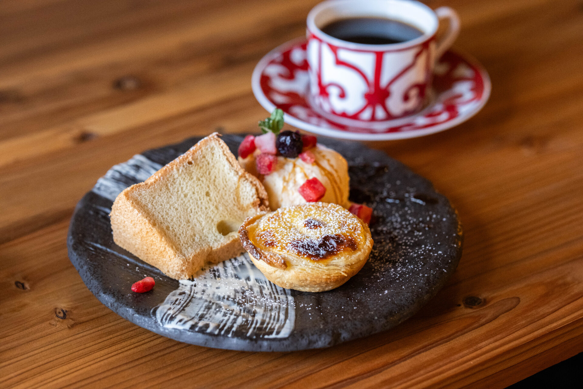 人気スイーツの「あんみつ」は、寒天と珈琲ゼリーの2種類から選べます。素朴な甘さと滑らかな口あたりの「あんみつ」は、暑い夏はもちろん、秋や冬の温かい部屋でホットコーヒーと一緒に食べるのも、また格別。