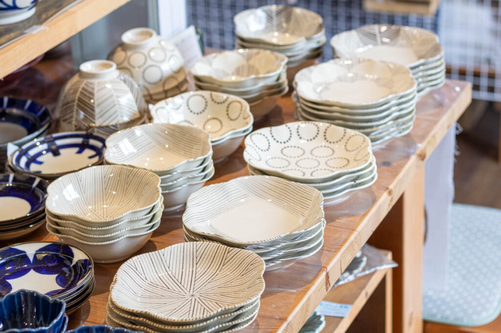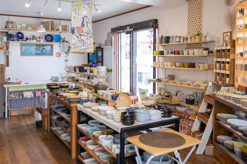 波佐見焼や美濃焼をはじめ、信楽焼、有田焼、益子焼、瀬戸焼など全国の窯元の器や、作家もの、ガラスの器など、日常使いしやすい器から一点物まで幅広くそろう同店。