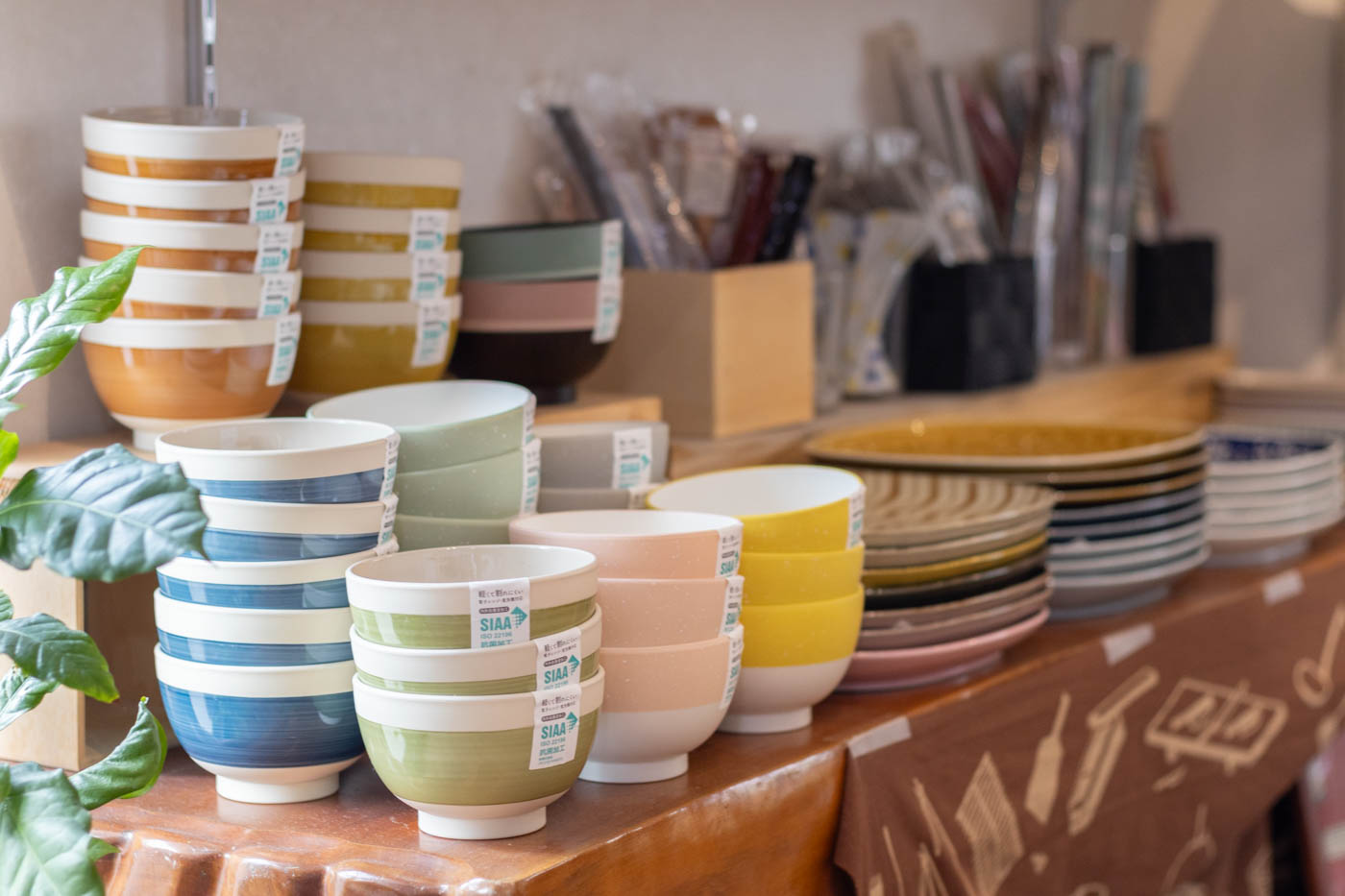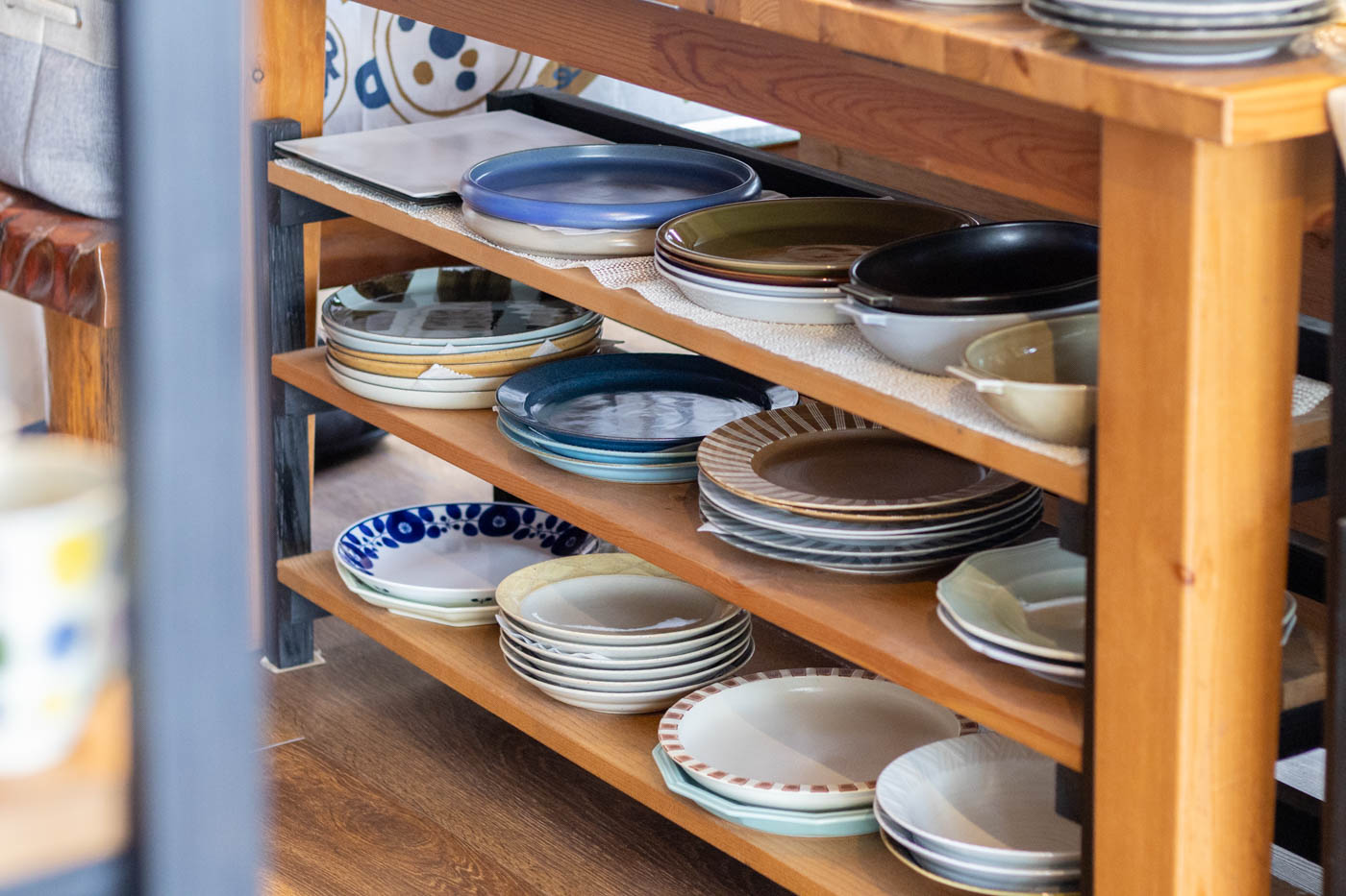 店内を歩くと、茶わん、小皿、プレート、グラス、箸置きなど、用途も産地も異なる器が次々と目に入ります。その数3,500点以上。窯元やシリーズ、用途ごとにディスプレイされているため、巡るほどに新しい発見があります。