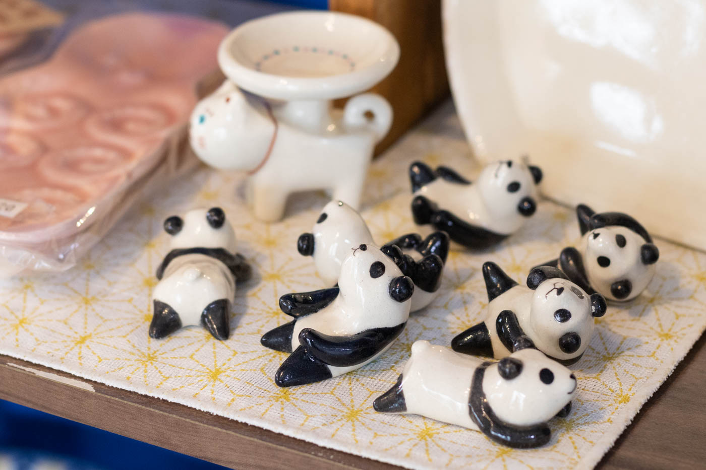そのほか、サクランボの絵付けがかわいい巌陶房(いわおとうぼう)の信楽焼や、菊祥陶器(きくしょうとうき)のイチゴやレモンの器、作家・牧田亮さんのパンダの箸置きなど、食卓に彩りを添えるアイテムが並んでいました。