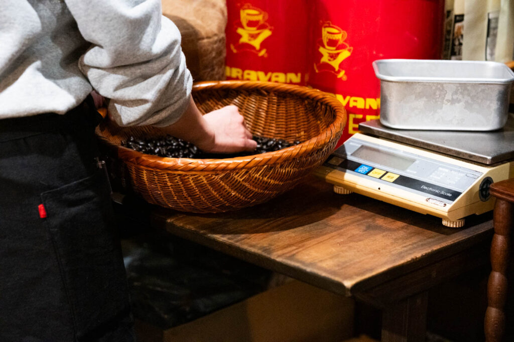 焙煎前も焙煎後も、豆を一粒ずつ手に取り、状態を確かめながら欠点豆を取り除くハンドピックを行うことで、雑味のないコーヒーに仕上がります。