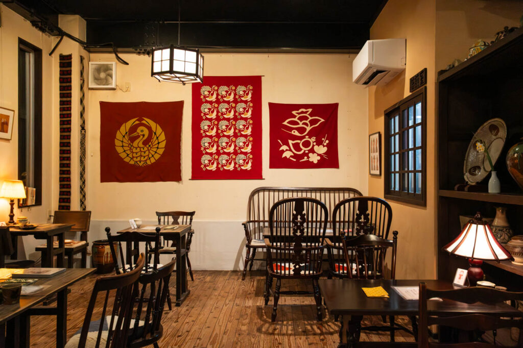 道路沿いにある店舗ののれんをくぐり、一歩店内に足を踏み入れると、外の気配がすっと遠のくほど別世界の空間が広がります。