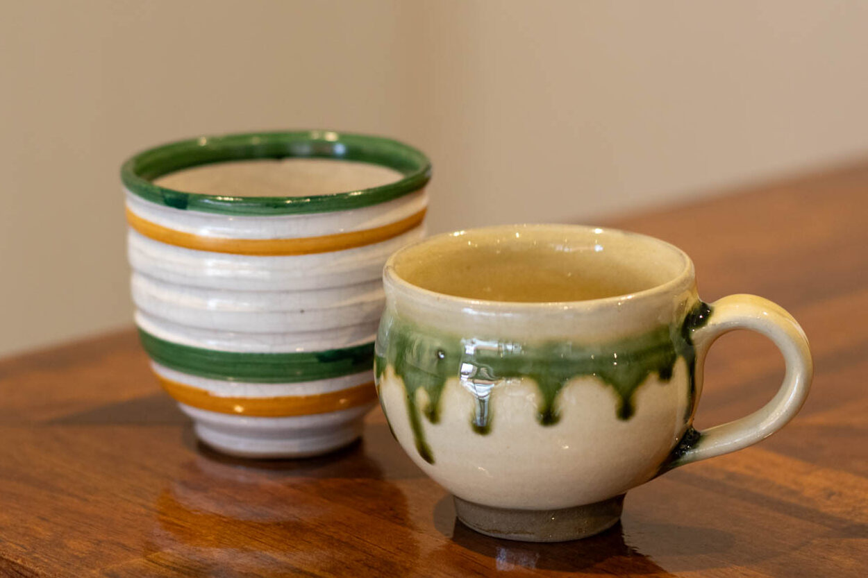 ホットコーヒーの器には、伝統工芸士・川原輝夫さんが手がけたお店オリジナルのカップや、荒木陶窯(あらきとうよう)、瀧川陶苑(たきがわとうえん)など県内の窯元による薩摩焼を使用。釉薬の表情が一つひとつ異なる器からは、手しごとの温かみがじんわりと伝わります。