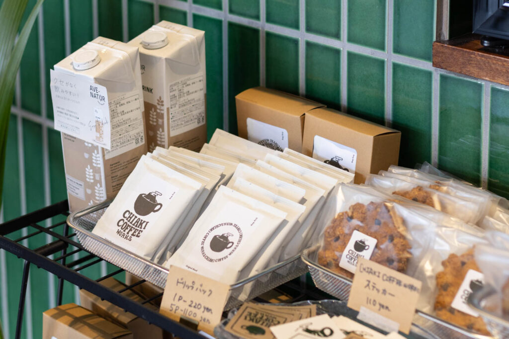 一部のメニューはテイクアウトにも対応しています。個包装の焼き菓子や、コーヒーのドリップパック、店内でも使われているオリジナルカップなども販売しているので、自宅でのカフェ時間にぜひ。