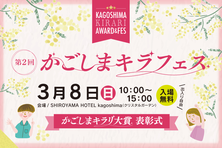 輝く女性たちの未来応援!「第2回 かごしまキラリ大賞」表彰式を10:00~11:00に開催。鹿児島で活躍する、女性起業家5人が登場します。夢を形に、挑戦し続ける彼女たちの熱い思いを感じてみませんか。この瞬間を一緒に盛り上げましょう!